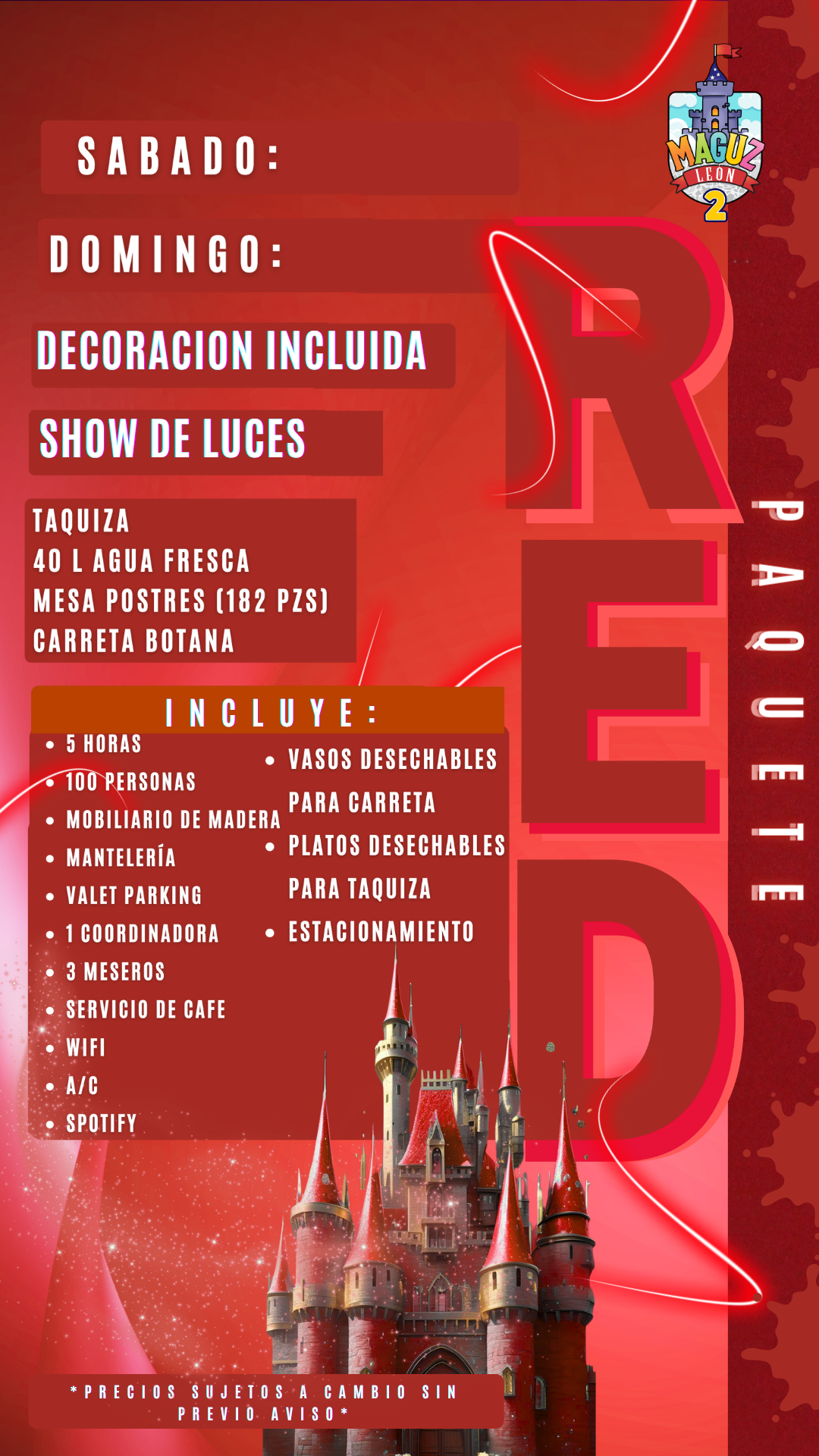 Tenemos diferentes servicios para tu evento: